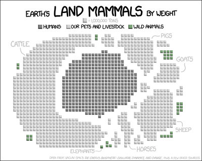 A gigatonne is 1,000,000,000 tonnes, and is often used when discussing human carbon dioxide emissions. This is roughly the mass of all land mammals (other than humans) in the world as per the XKCD comic strip to the right. It's also roughly twice the mass of all of the people in the world.